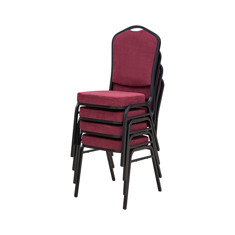 Der ALICANTE MODERN AM220 ist Teil unserer überarbeiteten Bankettstuhl-Kollektion aus der Standard Line. Das zentrale Element dieses Modells ist der bordeauxrote Polsterstoff Soro 68 der polnischen Marke Davis, der perfekt mit dem stabilen, mattschwarzen Stahlgestell harmoniert. Das Ergebnis ist ein Stuhl, der sowohl in klassischen Bankettsälen als auch in Hotels und modernen Eventlocations eine elegante Wirkung entfaltet. Ein Modell, das eine einheitliche und professionelle Raumgestaltung unterstützt – überall dort, wo sie gefragt ist.