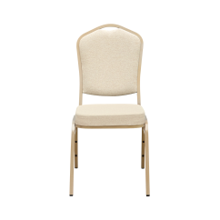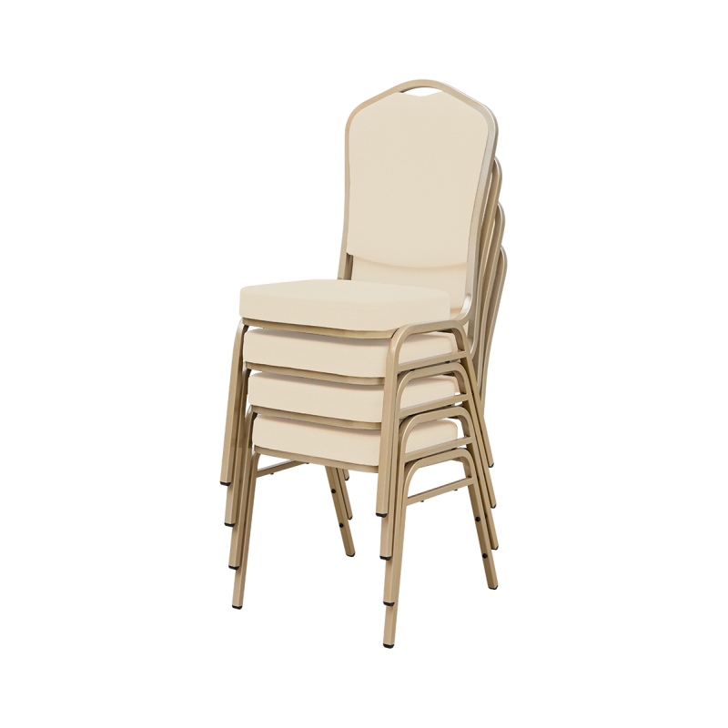 Das goldene Gestell und die helle Polsterung ergeben eine warme, elegante Kombination. Der AM770 kommt hervorragend an runden wie rechteckigen Banketttischen zur Geltung und unterstreicht den Charakter von Galas, Empfängen und Konferenzen.