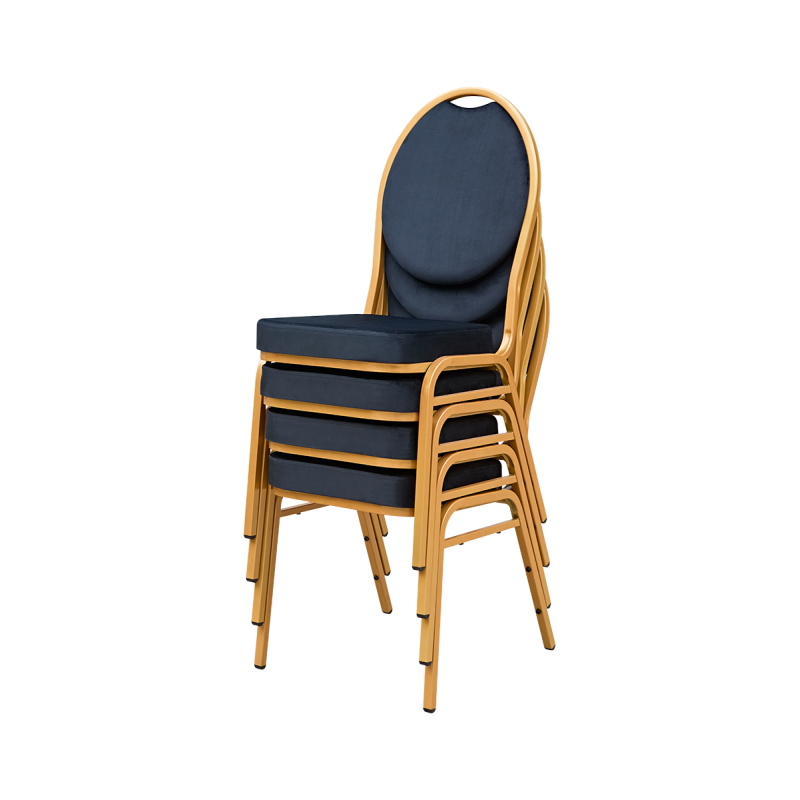 Das Modell HERMAN wurde für repräsentative Bankettsäle geschaffen – dort, wo Eleganz, ein stimmiges Gesamtbild und hoher Komfort gleichermaßen gefragt sind. Die Kombination aus schwarzem Velours und goldenem Stahlgestell verleiht Räumen eine edle, raffinierte Note und harmoniert sowohl mit klassischen als auch modernen Dekorationskonzepten. Ideal für Orte, an denen schnelle Raumwechsel, hochwertige Ausstattung und hoher Sitzkomfort über viele Stunden hinweg unverzichtbar sind – von Galas und Firmenbanketten bis hin zu festlichen Veranstaltungen.