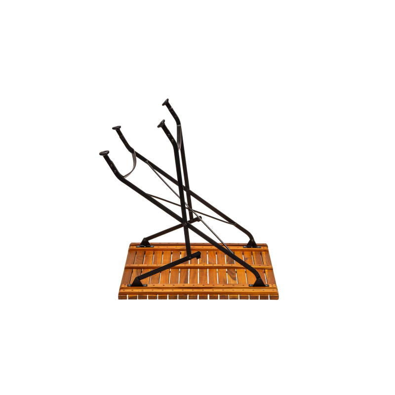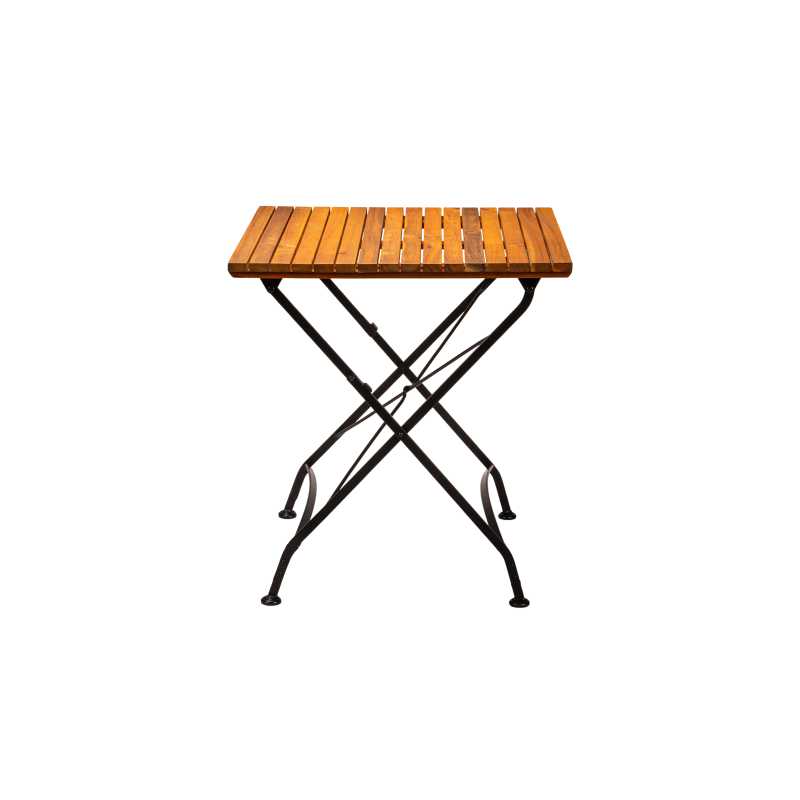 Dank der kompakten Maße von 70x70 cm eignet sich der Tisch ideal für kleinere Räume und bietet Platz für 2–4 Personen. Die klappbare Konstruktion ermöglicht eine einfache Lagerung und eine schnelle Vorbereitung des Gastronomiebereichs – besonders wichtig für saisonale Betriebe und flexible Raumgestaltung.