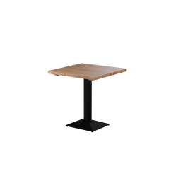 Beim Modell GIZA kommt eine massive Tischplatte aus Eichenholz mit einer Stärke von 38 mm, die dem Tisch einen markanten und prestigeträchtigen Charakter verleiht. Eiche ist für ihre außergewöhnliche Haltbarkeit und Widerstandsfähigkeit bei intensiver Nutzung bekannt und eignet sich daher ideal für Bereiche mit hoher Gästefrequenz.