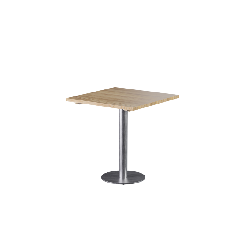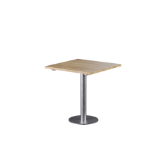 Der Fuß des Holztisches SIGMA R besteht aus rostfreiem Edelstahl. Die runde Säule mit einem Durchmesser von 7,6 cm verleiht der Konstruktion eine filigrane, leichte Form. Im Inneren befindet sich ein massiver Gusseisenkern, der für Stabilität und Steifigkeit sorgt. Die runde Bodenplatte gewährleistet sicheren Stand auch bei intensiver Nutzung – der Tisch wackelt nicht und bleibt stabil auf dem Untergrund.