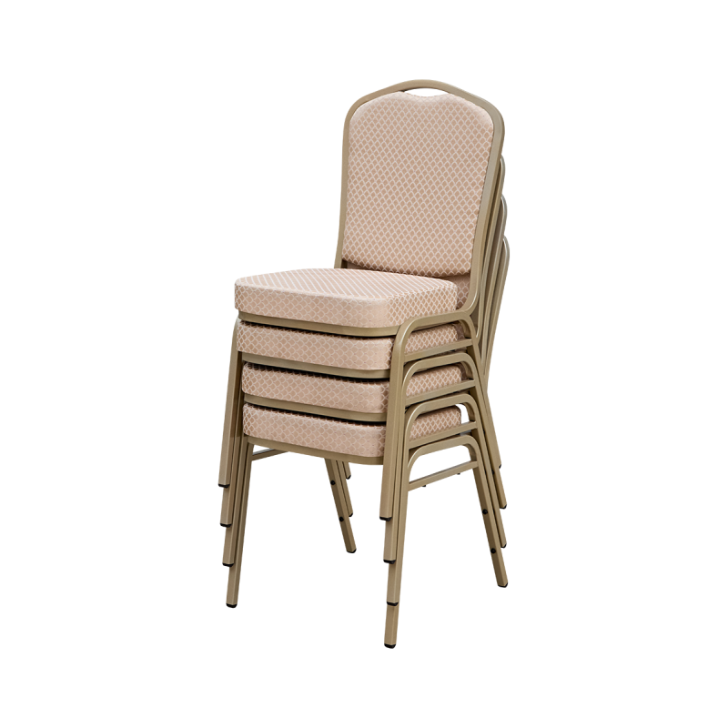 Das Modell ES314 ist die ideale Wahl für Bankettsäle, in denen Eleganz, Funktionalität und ein repräsentativer Charakter gefragt sind. Die beige Polsterung in Kombination mit dem goldenen Gestell schafft eine warme, einladende Atmosphäre und unterstreicht den Stil des Raumes. Perfekt geeignet für festliche Anlässe wie Galas, Jubiläen oder Firmenempfänge.