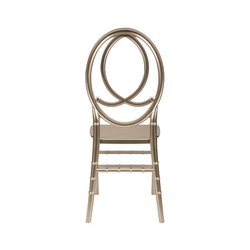 Der Phoenix-Stuhl ist leicht (wiegt nur 4,2 kg) und praktisch – die Stapelbarkeit von bis zu 10 Stühlen macht Lagerung und Transport äußerst einfach. Das außergewöhnliche Design und die hohe Verarbeitungsqualität machen ihn zur perfekten Wahl für anspruchsvollste Eventplaner und Brautpaare.