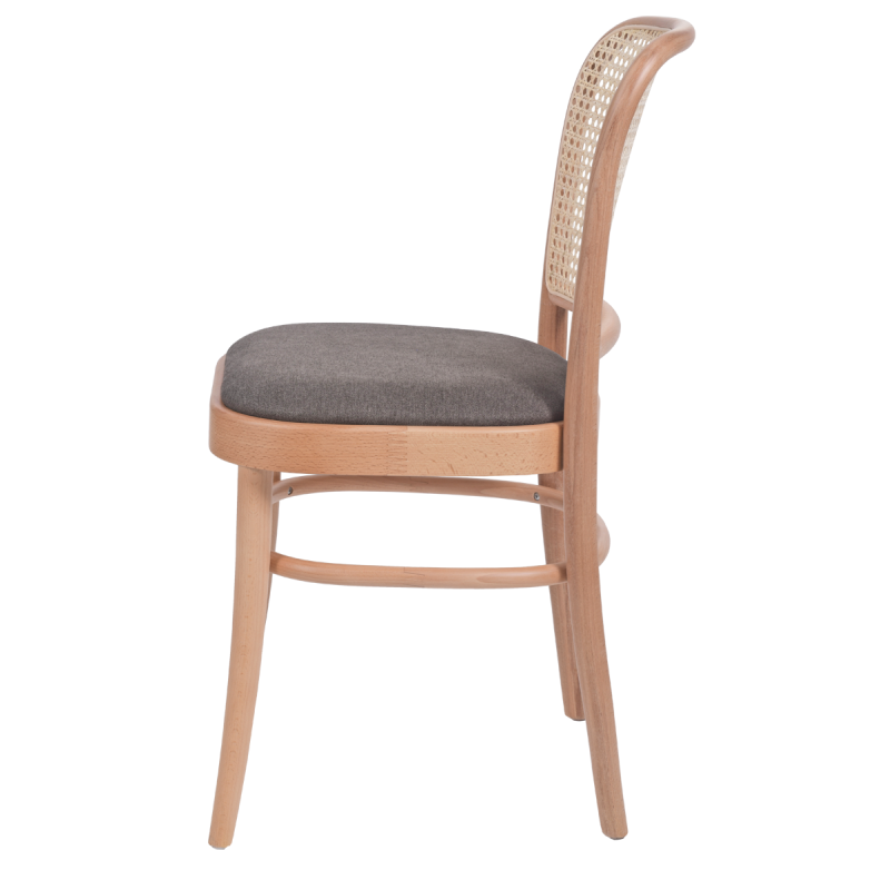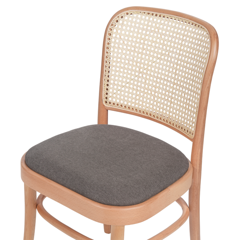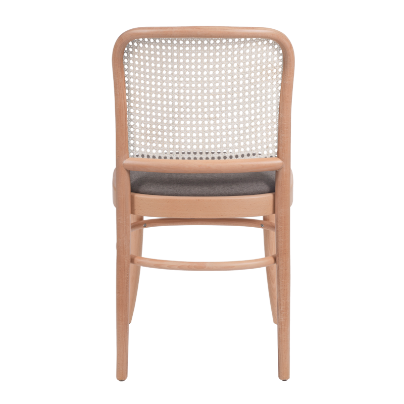 Der Bugholzstuhl LOOMI 811 Rattan mit gepolstertem Sitz ist eine elegante Verbindung aus klassischer Form und erhöhtem Sitzkomfort. Die schlanke Konstruktion aus massivem Buchenholz sowie die luftige Rückenlehne aus natürlichem Rattangeflecht verleihen ihm Leichtigkeit und zeitlosen Charakter. In der natürlichen Holzfarbe fügt sich das Modell harmonisch in die Ästhetik von HoReCa-Innenräumen ein. Dieser Holzstuhl wurde für die intensive Nutzung in Restaurants, Cafés und Hotels entwickelt, wo Design und Langlebigkeit gleichermaßen gefragt sind.