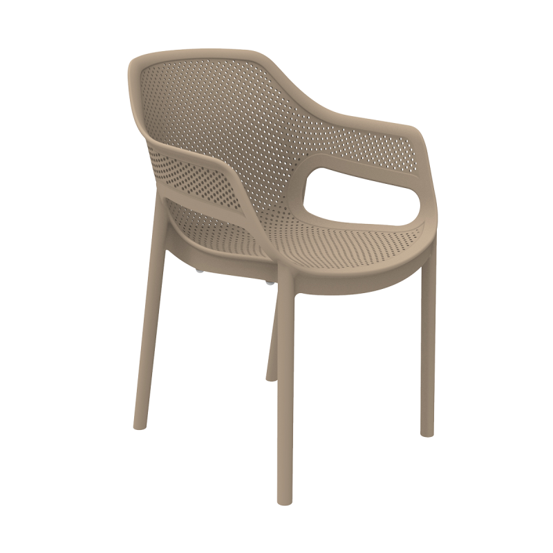 Der Stuhl AERO ist ein Modell, das für intensiv genutzte Außenbereiche konzipiert wurde. Seine dynamische, durchbrochene Form verleiht der Einrichtung Leichtigkeit, ohne andere Gestaltungselemente zu dominieren. Die ergonomisch geformten Armlehnen erhöhen den Komfort und maximieren das Wohlbefinden der Gäste während ihres Aufenthalts. Dieses Modell eignet sich hervorragend für Bars, Bistros, Restaurantbereiche, Biergärten sowie als funktionaler Poolstuhl.