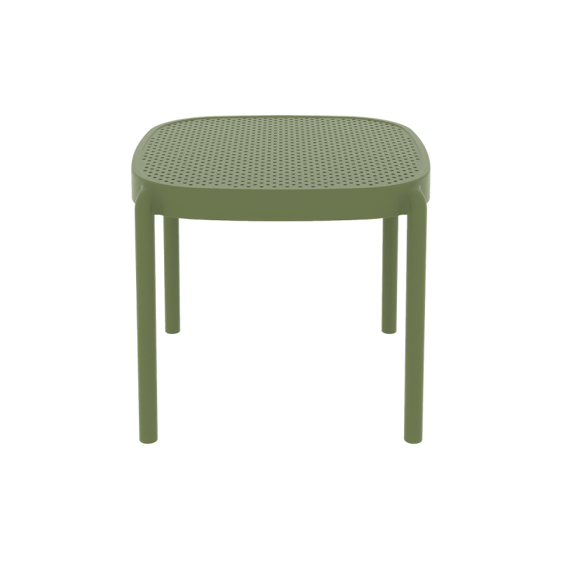 Ein kompaktes Format kann einen großen Unterschied machen. Der ARIA 46x45 bringt Leichtigkeit und Flexibilität in den Außenbereich, ohne dessen Offenheit zu beeinträchtigen. Die abgerundete Tischplatte mit Perforation verleiht ihm Charakter und sorgt für eine frische, moderne Optik. Dieser Tisch für Biergärten passt ideal in lockere, urbane Arrangements, auf Café-Patios und in Relaxzonen. Als Outdoor-Tisch kann er sowohl eigenständig als auch als Ergänzung zu größeren Tischen eingesetzt werden. Ebenso eignet er sich als Pooltisch in hotelnahen Erholungsbereichen.