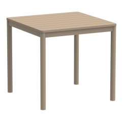 Die Tischplatte des TERRAZZA 80x80 besteht aus glasfaserverstärktem Polypropylen. Dieses Material bleibt formstabil und hält der täglichen Nutzung im Außenbereich zuverlässig stand. Die Oberfläche ist UV-beständig und behält ihre Eigenschaften auch bei intensiver Sonneneinstrahlung.