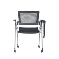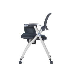 Dank der klappbaren Konstruktion und der Möglichkeit, ein Schreibtablett anzubringen (separat erhältlich), unterstützt FLOW aktives Arbeiten und ermöglicht bequemes Schreiben oder die Nutzung eines Laptops ohne zusätzliche Tische. Nach der Veranstaltung lassen sich die Stühle flach zusammenklappen und platzsparend lagern.