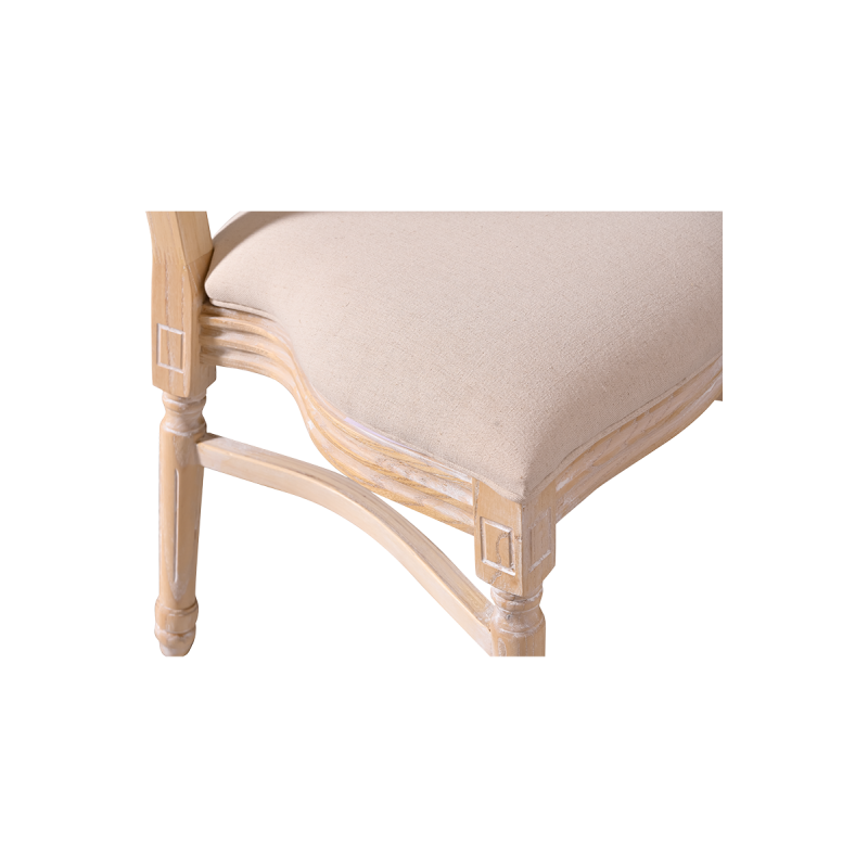 Die sanft abgerundete Rückenlehne in der charakteristischen Medaillonform, die geschnitzten Beine und die feinen Verzierungen des Rahmens betonen den eleganten Charakter des Stuhls. Jedes Detail wurde mit größter Sorgfalt und Liebe zur Ästhetik ausgearbeitet – dadurch ist der Stuhl nicht nur ein Blickfang, sondern auch ein dekoratives Element an sich – ideal als stilvolle Kulisse für Hochzeitsfotos und exklusive Raumgestaltungen.