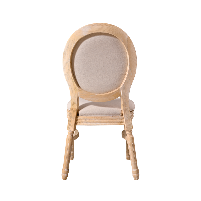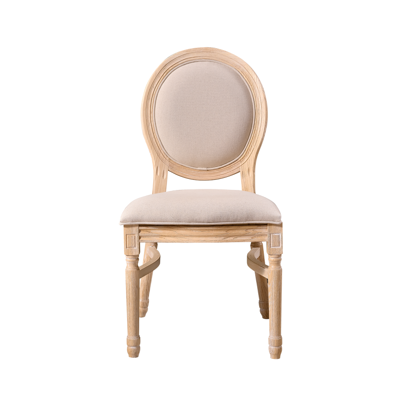 Die universelle, natürliche Farbgebung und die klassische Form machen den Stuhl zu einer perfekten Ergänzung für unterschiedlichste Einrichtungsstile. Das Modell fügt sich harmonisch sowohl in palastartige Interieurs als auch in moderne Eventräume ein.