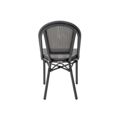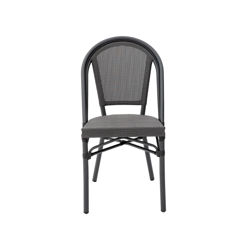 MATTEO ist ein Technorattan Stuhl mit eleganter, cafétypischer Linienführung, der Atmosphäre schafft, ohne überladen zu wirken. Die abgerundete Rückenlehne und die dezent geschwungenen Armlehnen verleihen ihm Leichtigkeit, während das Geflecht im Farbton Graphit dem Raum ein professionelles Erscheinungsbild verleiht. Dieses Modell eignet sich hervorragend für gastronomische Außenbereiche, Patios sowie Outdoor-Zonen von Restaurants. Es bewährt sich überall dort, wo Gäste Komfort und eine durchdachte Ästhetik erwarten.