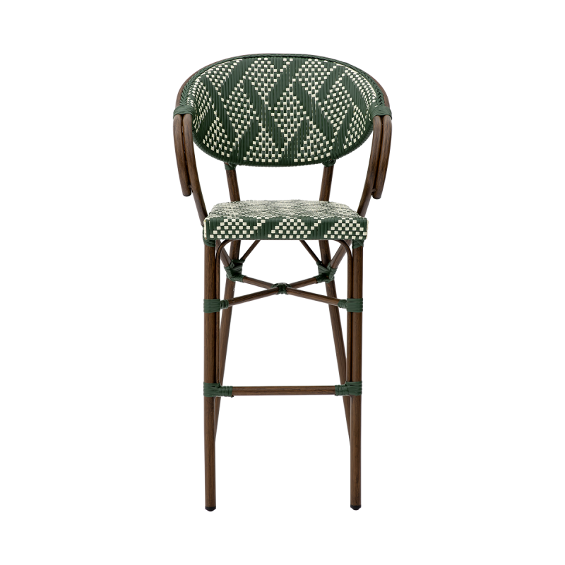 Das Modell CAMILLO BAR überzeugt durch sein markantes, dekoratives Geflecht und seine leichte, erhöhte Bauweise, die ideal für den Einsatz an Bartischen und Hochtischen geeignet ist. Die abgerundeten Armlehnen sorgen für zusätzlichen Komfort und verleihen dem Gesamtbild eine stimmige, durchdachte Optik. Dieser Stuhl eignet sich hervorragend für stark frequentierte Bereiche, in denen sowohl Ästhetik als auch Funktionalität zählen.