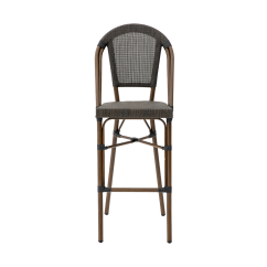 Der Technorattan Stuhl MATTEO BAR präsentiert eine geordnete, klassische Linie, die sich ideal in die Ästhetik gastronomischer Einrichtungen einfügt. Die geschlossene Rückenlehne in Kombination mit der schlichten Sitzform schafft einen komfortablen und stabilen Platz für Gäste, während die erhöhte Konstruktion funktionale Bereiche an Bartischen und Hochtischen ermöglicht. Dieses Modell wirkt optisch leicht und unaufdringlich und ermöglicht gleichzeitig ein stimmiges, professionelles Erscheinungsbild.