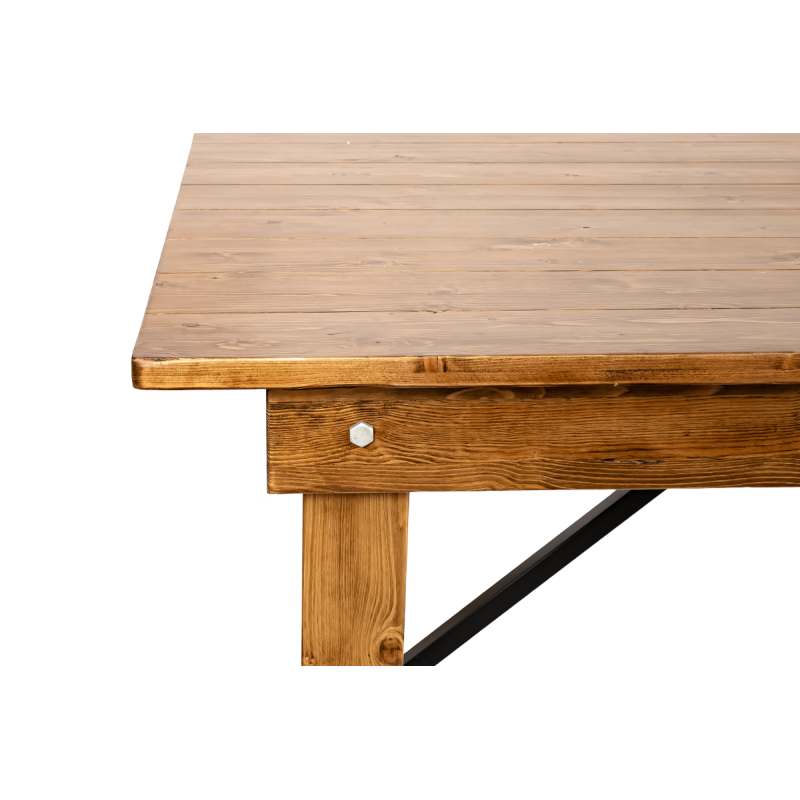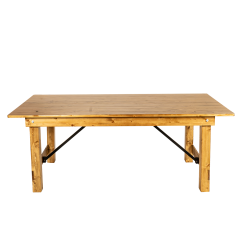 Der Holztisch Country ist ein außergewöhnliches Möbelstück im rustikalen Stil, das vollständig aus natürlichem Kiefernholz gefertigt ist. Seine stabile Konstruktion und das schlichte, zugleich effektvolle Design machen ihn zur perfekten Ergänzung für den Charme ländlicher Festsäle, Gasthäuser und Restaurants. Er ist die ideale Wahl für Orte, an denen Beständigkeit, natürliche Materialien und der zeitlose Charakter von Holz geschätzt werden.