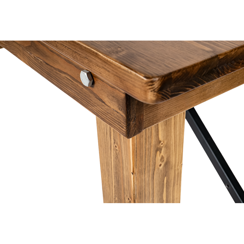 Die natürliche Struktur der Kiefer betont den einzigartigen Charme des Tisches und verleiht dem Raum Wärme und Gemütlichkeit. Sorgfältig ausgearbeitete Details und die sichtbare Maserung verleihen ihm ein authentisches, ländliches Aussehen. Metallverstärkungen erhöhen die Stabilität der Konstruktion und gewährleisten Sicherheit selbst bei großen Festen.