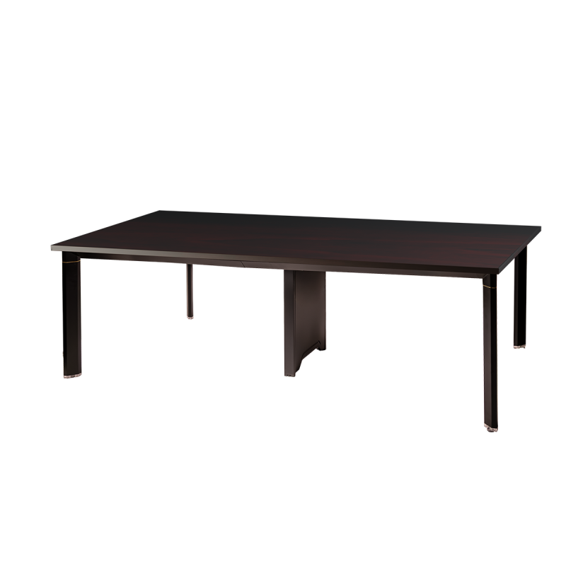 Das Gestell des Holztisches Grande besteht aus robustem Stahl, der maximale Stabilität selbst bei hoher Belastung und häufigem Einsatz bietet. Die Tischbeine haben eine elegante, klare Form, die dem Raum einen modernen Charakter verleiht und sich zugleich problemlos in verschiedenste Einrichtungskonzepte einfügt – von minimalistischen Konferenzräumen bis hin zu klassischen Hotelinterieurs.